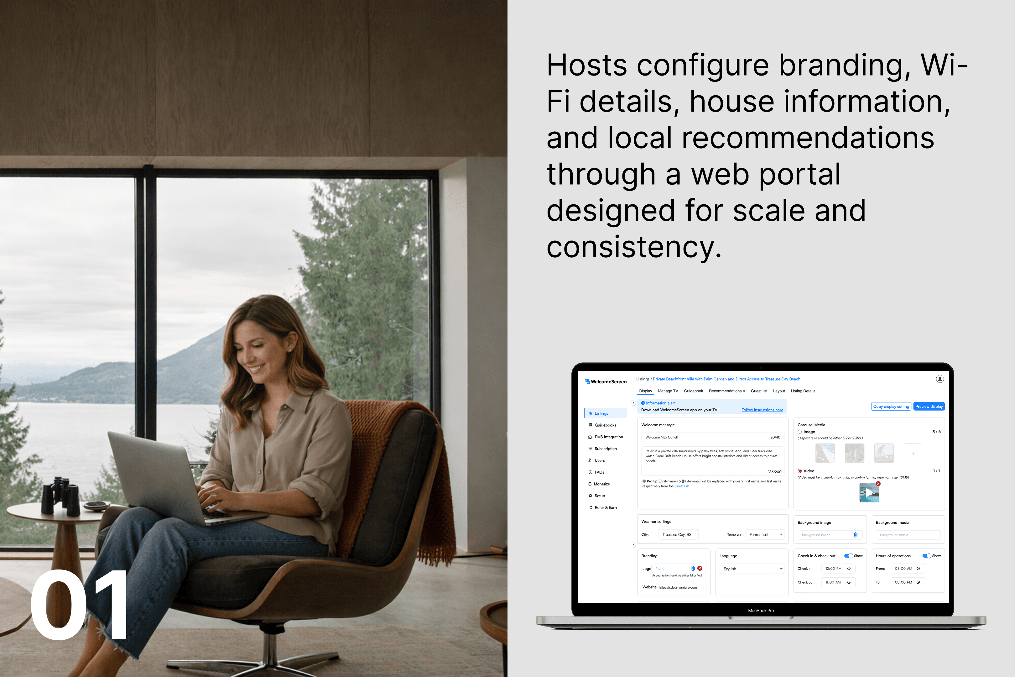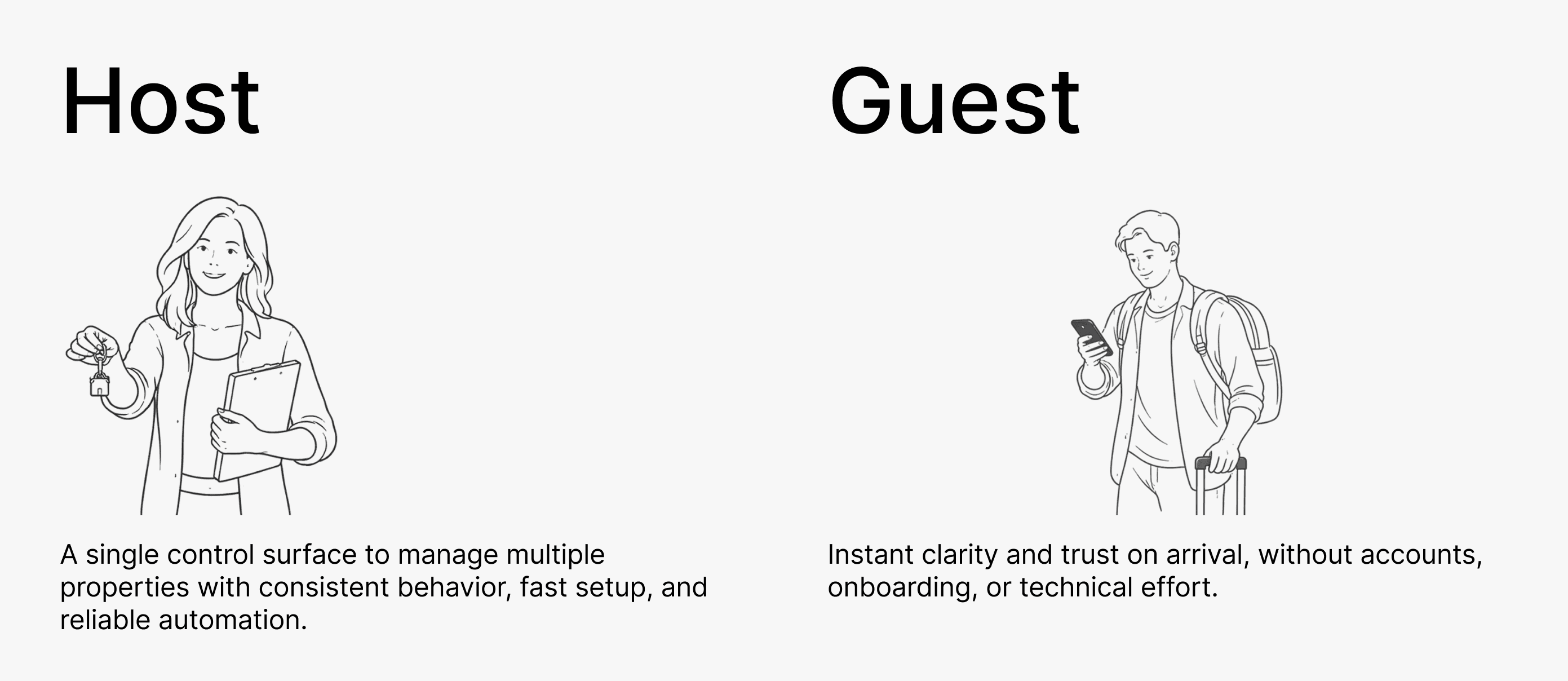 Hosts configured content and rules in advance through a web portal. That configuration was translated into a live, on-property experience designed to feel immediate and trustworthy at the moment of arrival.